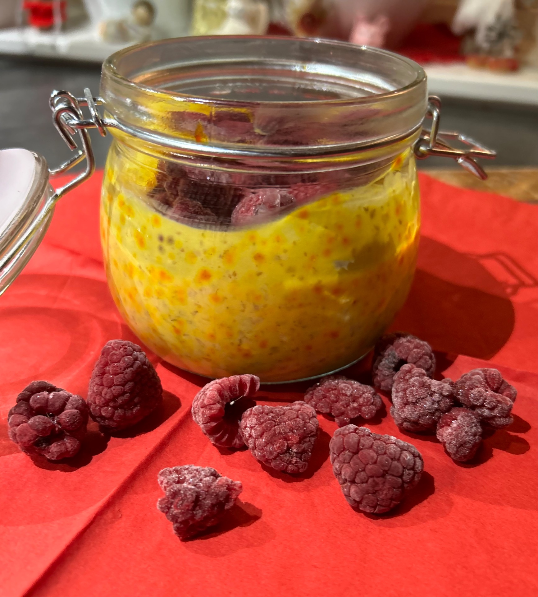 En variant av overnight oats som smakar sommar rakt igen. Gör flera på en gång då receptet är för 6 portioner. Håller sig 1 vecka i kylen.