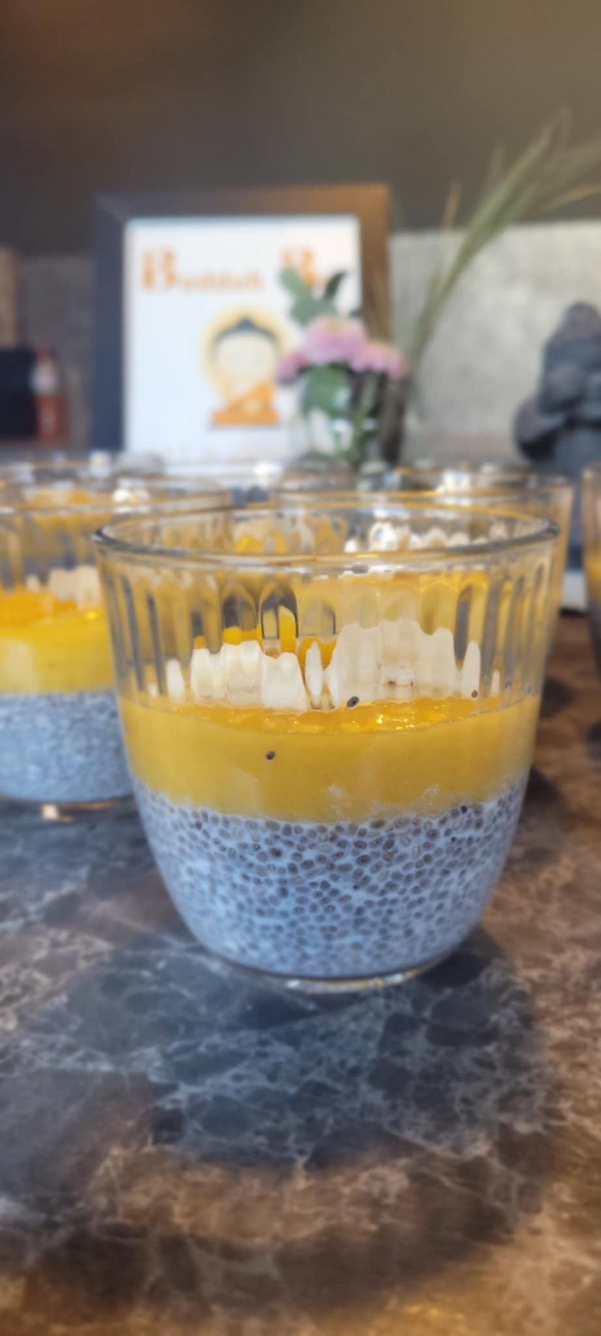 - Toppa med mango & riven kokos.