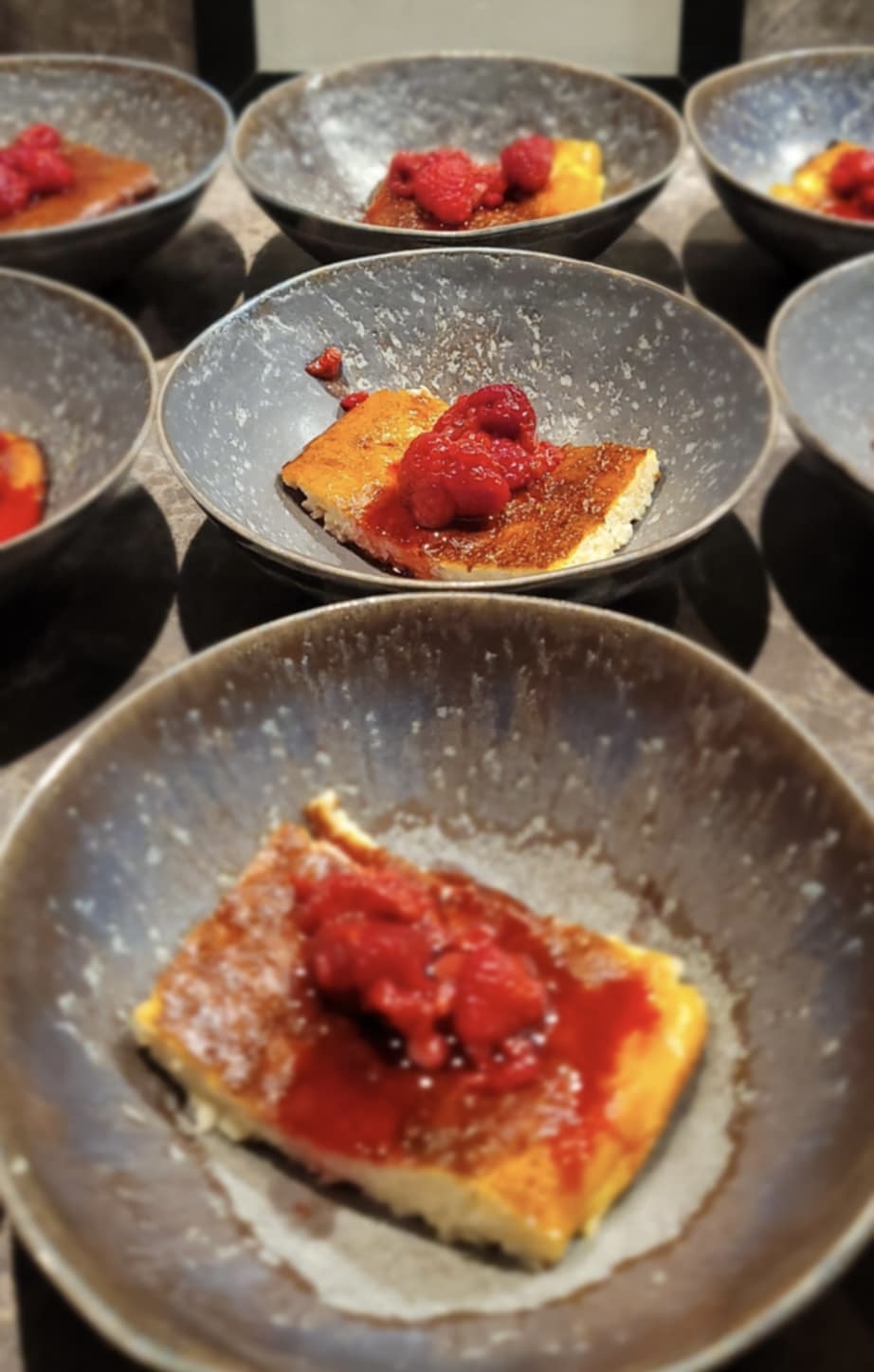 Grädda mitt i ugnen i ca 10 minuter. den ska stelna men inte se torr ut.