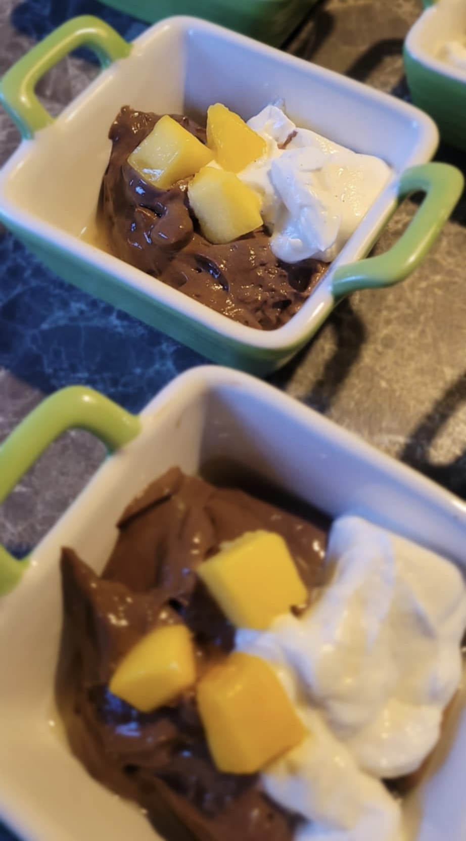 - Mixa: 1 dl kvarg (naturell el. vanilj utan tillsatt socker), 1 dl light kokosmjölk & mango (jag använder fryst).
