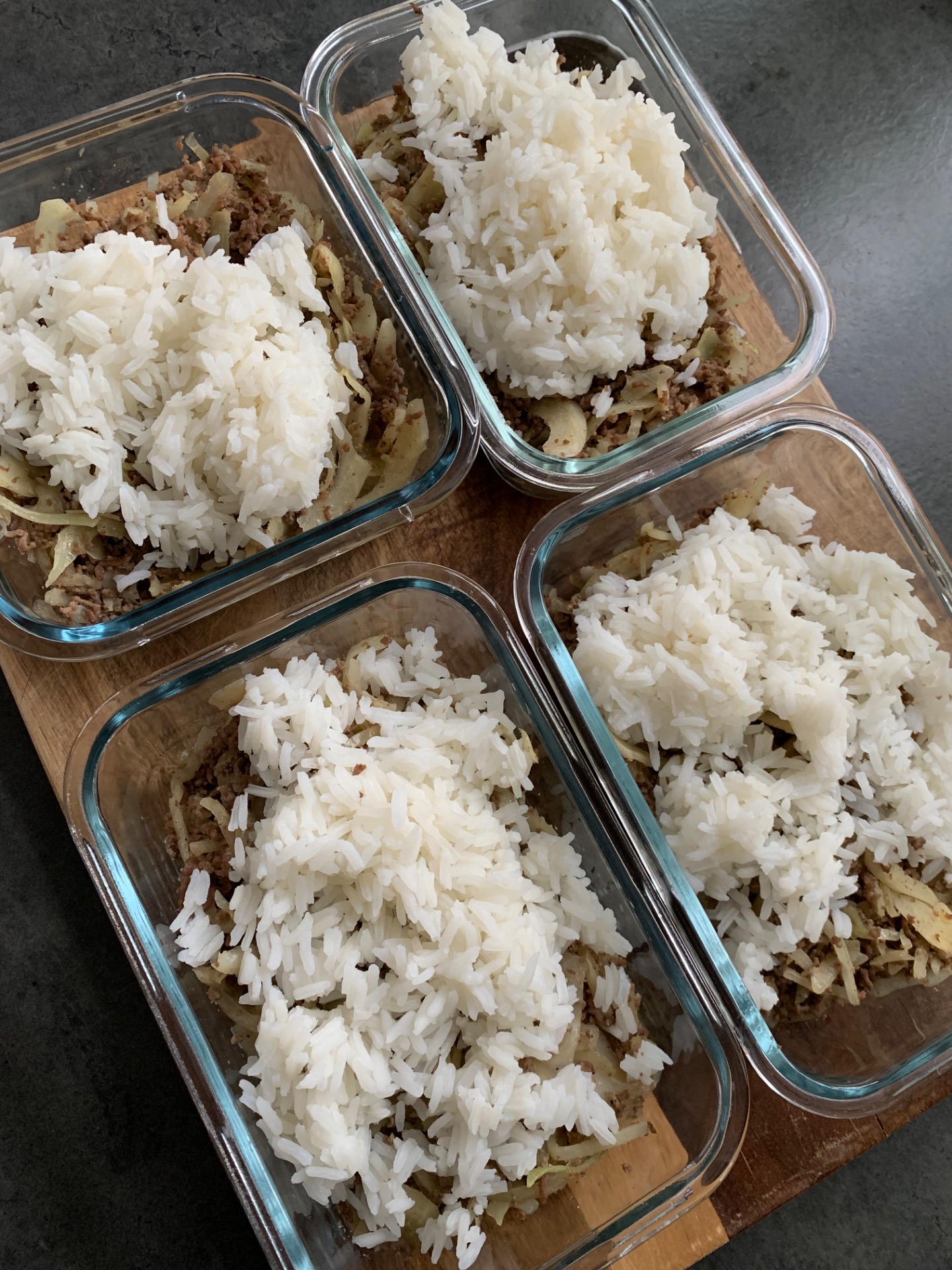- Dela upp i 4 matlådor och tillsätt 1 dl kokt ris i varje matlåda.