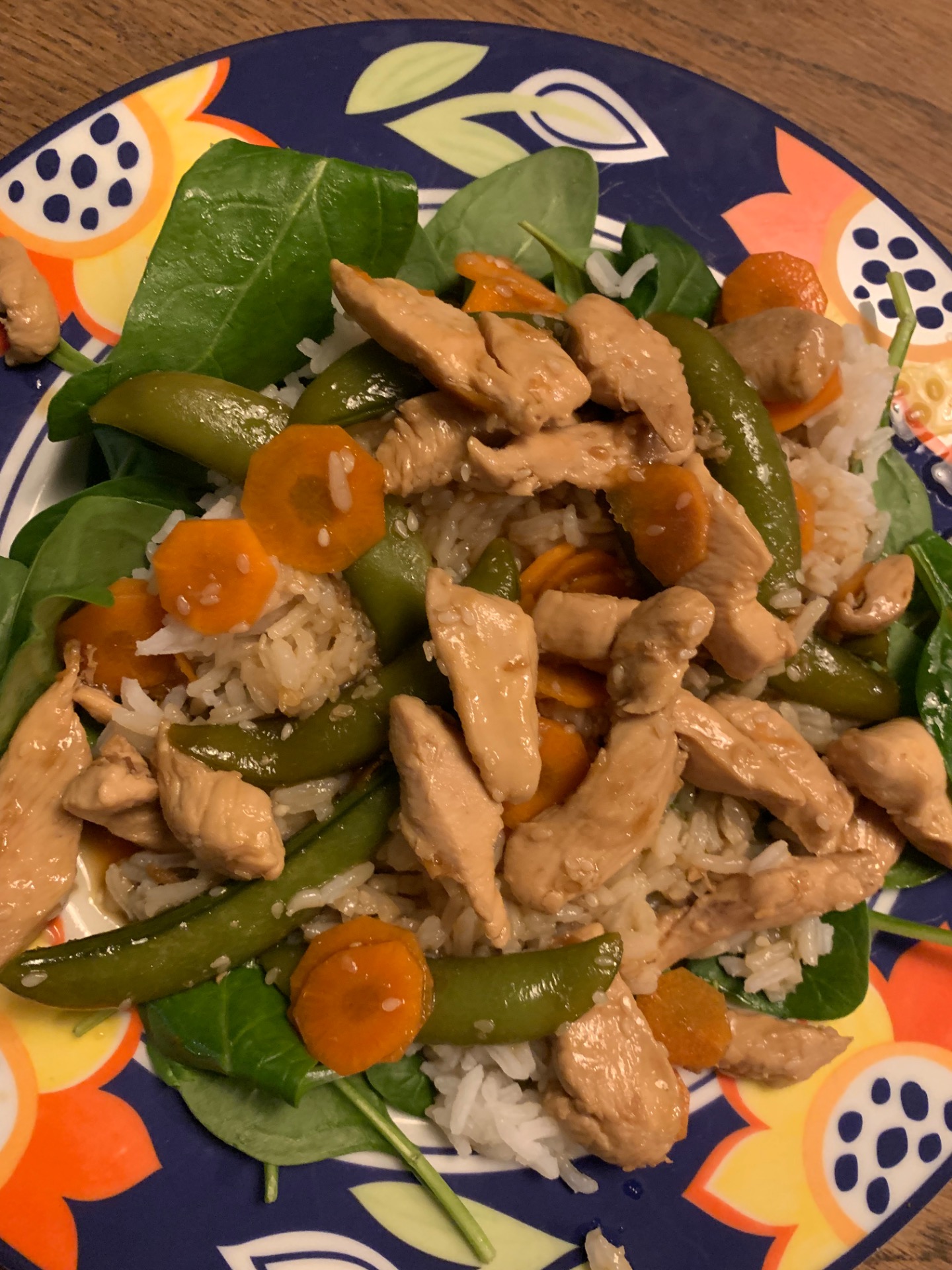 - Lägg spenaten i botten på tallrikarna och servera teriyakigrytan på spenaten med ris.